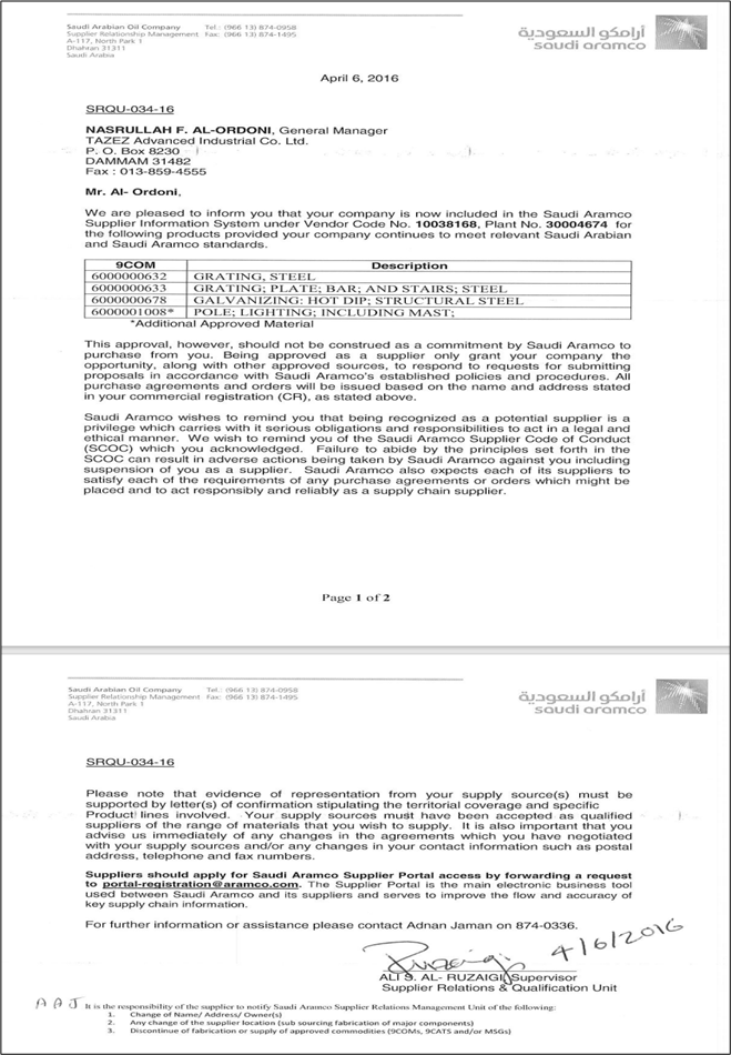 ARAMCO Approval Letter